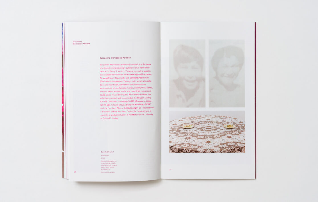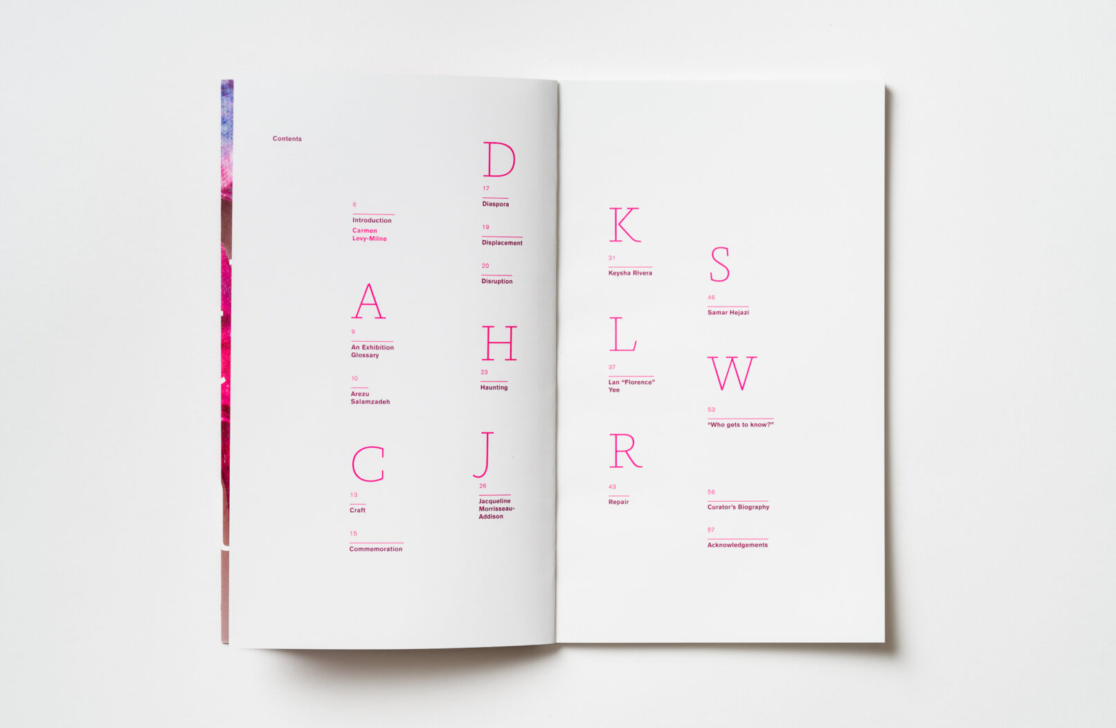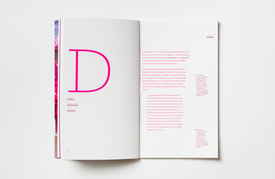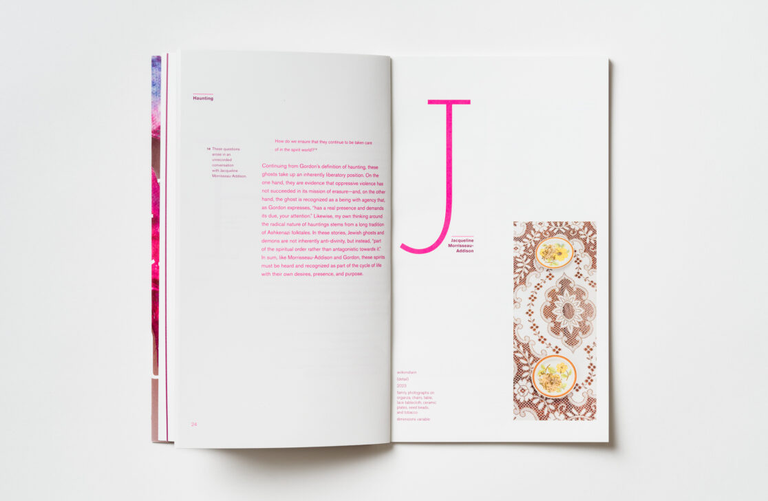 Designing the catalogue as a glossary for the artists Samar Hejazi, Jacqueline Morriseau-Addison, Keysha Rivera, Arezu Salamzadeh and Lan “Florence” Yee to highlight the materiality of their practices, the exhibition Ghostly Makers critically examines and re-imagines contemporary constructions of visibility and their influence on various aspects of cultural identity.