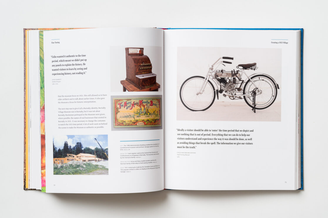 Compiled through interviews with past and present staff and volunteers and selections from a vast array of archival materials, Our Stories at 50 follows the development of the Burnaby Village Museum over 50 years, from its founding as an immersive, ten-acre “living history” pioneer village, to celebrate the 100th anniversary of BC joining confederation, towards a more balanced and complex interpretation of the historical and cultural identities within Burnaby, all while creating an interactive, inclusive and inviting space for visitors.
